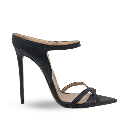 Spitze Sandale mit Vorderbändern und Knöchelriemchen. 100 mm oder 120 mm Pfennigabsatz