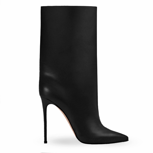 Schlauchstiefel unter der Wade aus echtem Leder mit 100 mm und 120 mm Pfennigabsatz
