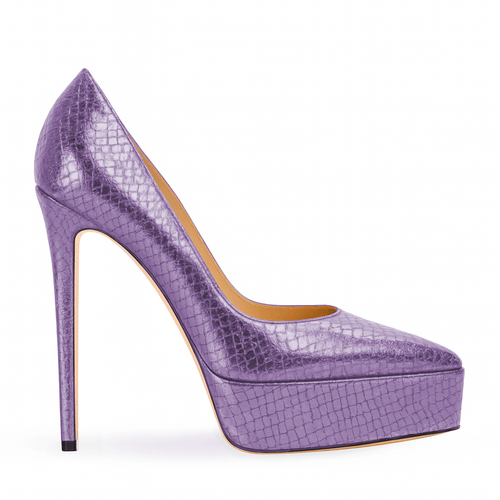 Spitz zulaufender Pumps mit laminiertem Schlangenleder-Effekt, Plateau von 3,5 cm und 13 cm Absatz