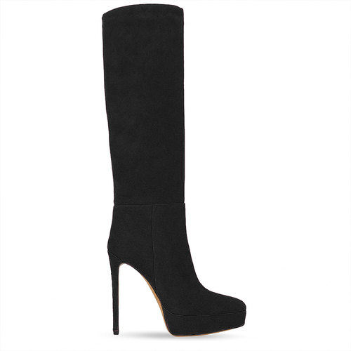 Schlauchstiefel unterhalb des Knies aus echtem Wildleder mit Stilettoabsatz und 2,5 cm Plateau