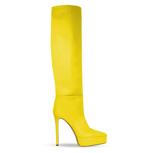 Rohrstiefel unterhalb des Knies aus echtem Leder mit Stiletto-Absatz und 2,5 cm Plateau