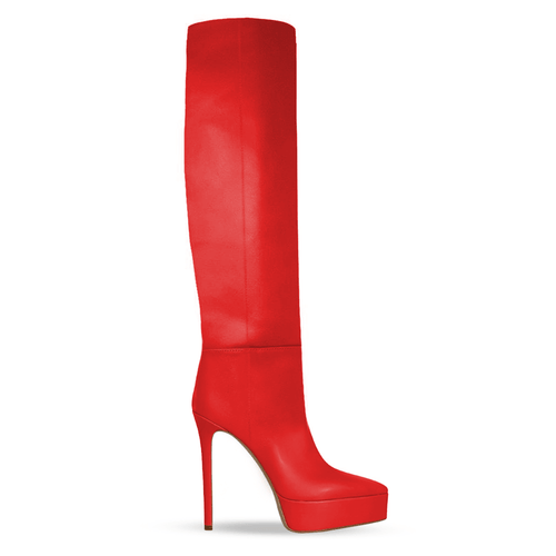 Rohrstiefel unterhalb des Knies aus echtem Leder mit Stiletto-Absatz und 2,5 cm Plateau