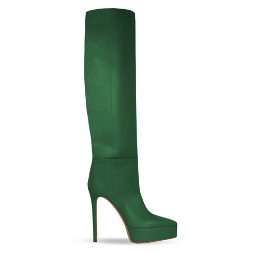 Rohrstiefel unterhalb des Knies aus echtem Leder mit Stiletto-Absatz und 2,5 cm Plateau