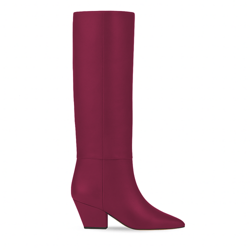 Rohrstiefel unterhalb des Knies aus echtem Leder mit 60mm breitem Absatz