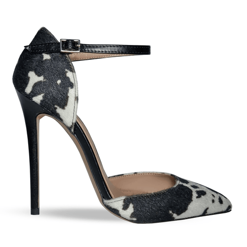 Geschlossener spitzer Sandale mit Kuhmuster, verstellbarem Knöchelriemen, Stiletto-Absatz in 80mm, 100mm oder 120mm