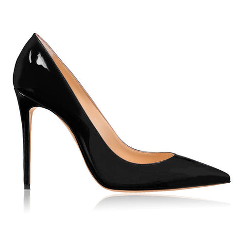 Spitz zulaufendes Dekolleté aus Lackleder mit 100 mm Stilettoabsatz
