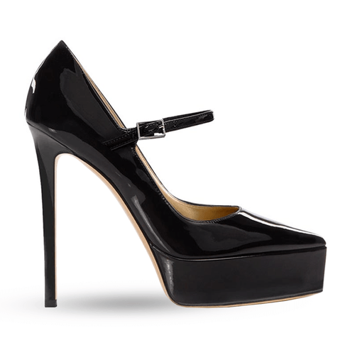 Zapato de punta en charol con correa ajustable, plataforma de 3.5cm y tacón de 13cm
