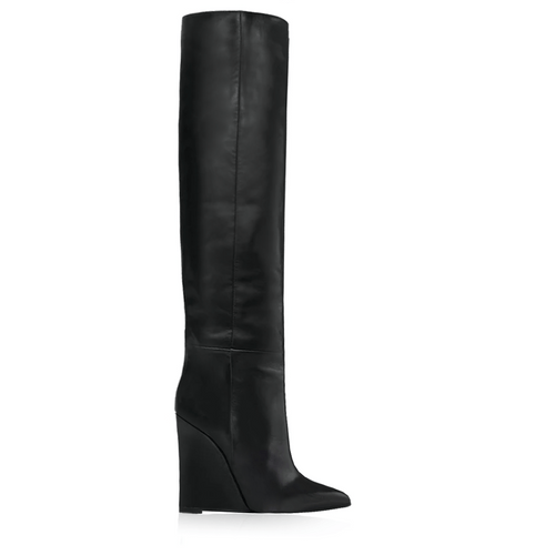 Botín tubular por debajo de la rodilla en piel genuina con cuña de 100mm