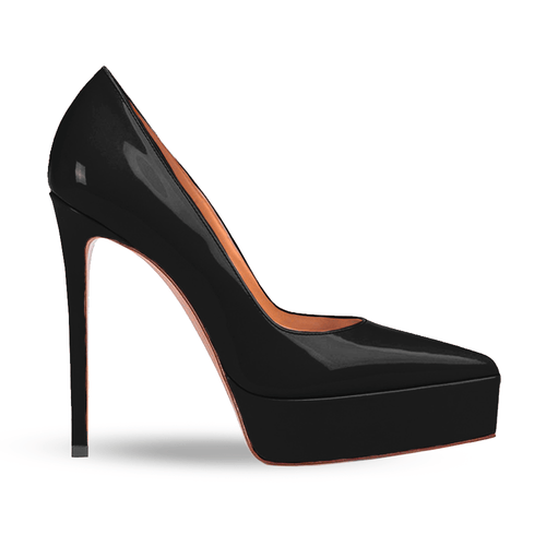 Zapato de punta en charol con plataforma de 3.5cm y tacón de 13cm