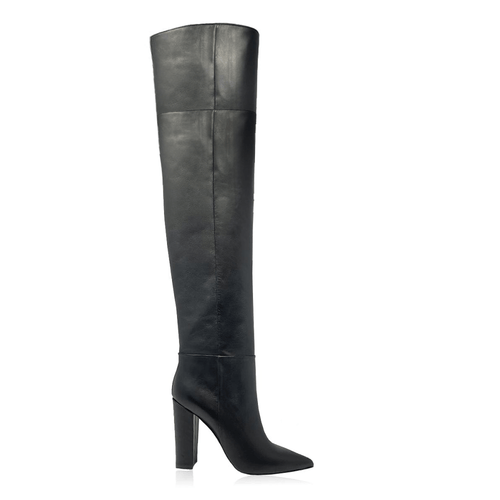Bota tubular por encima de la rodilla en piel auténtica con tacón ancho de 90mm