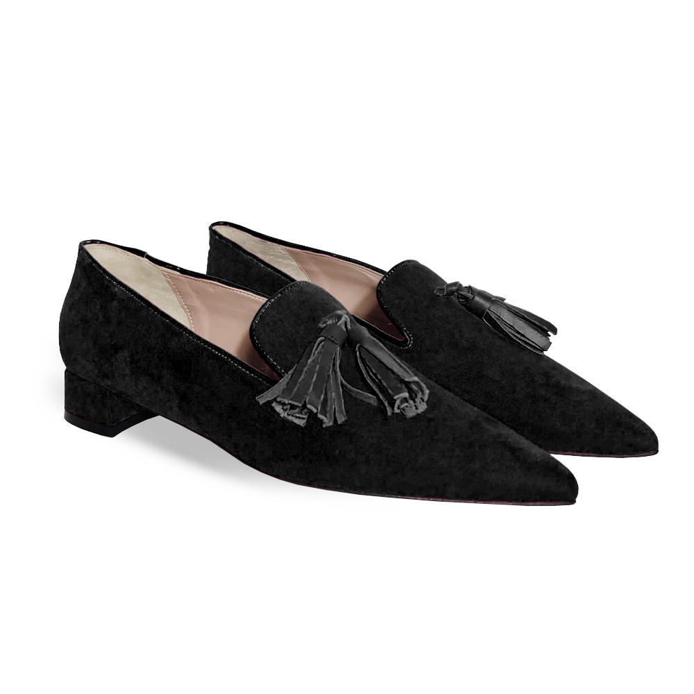Décolleté avec tige en cuir suédé et pompon avant