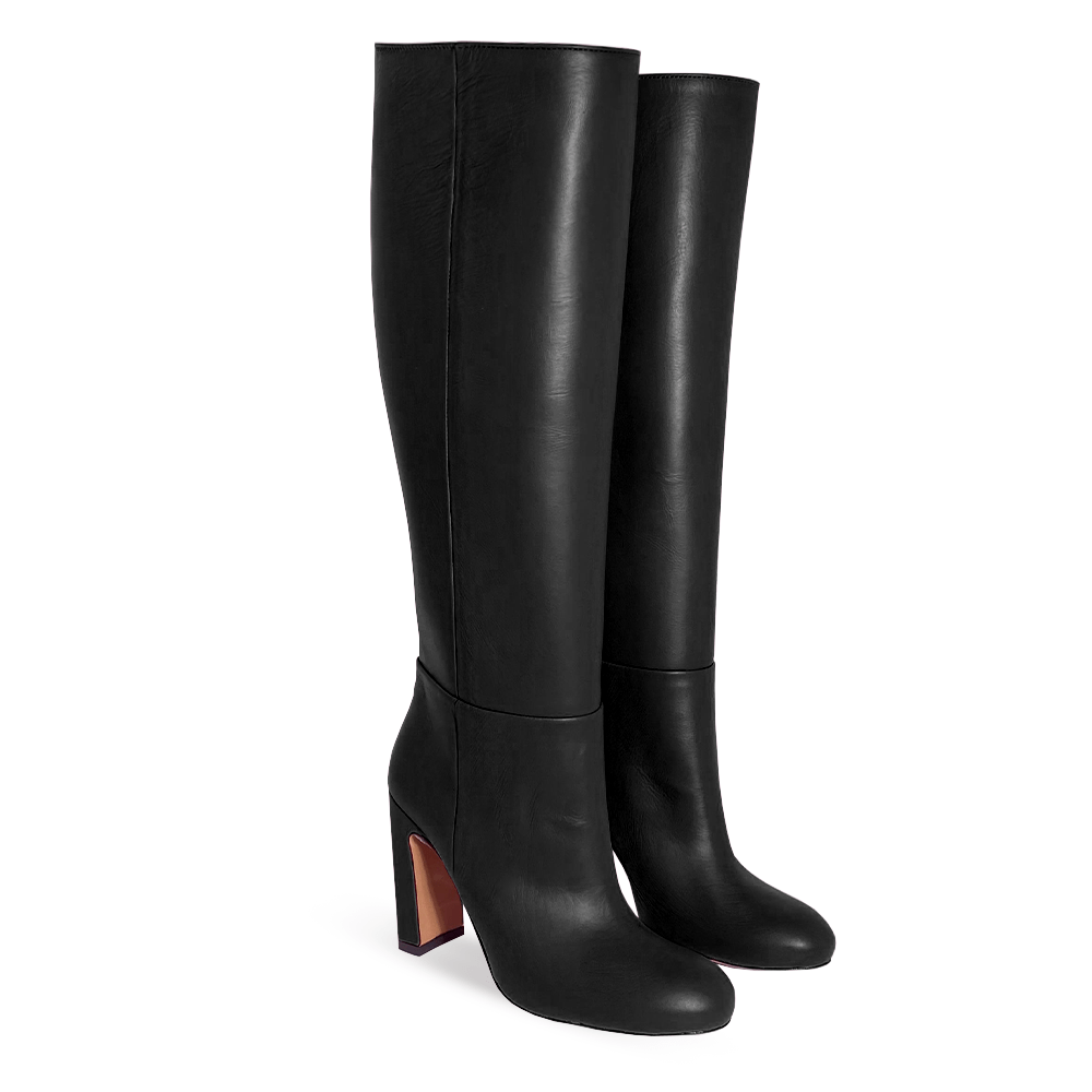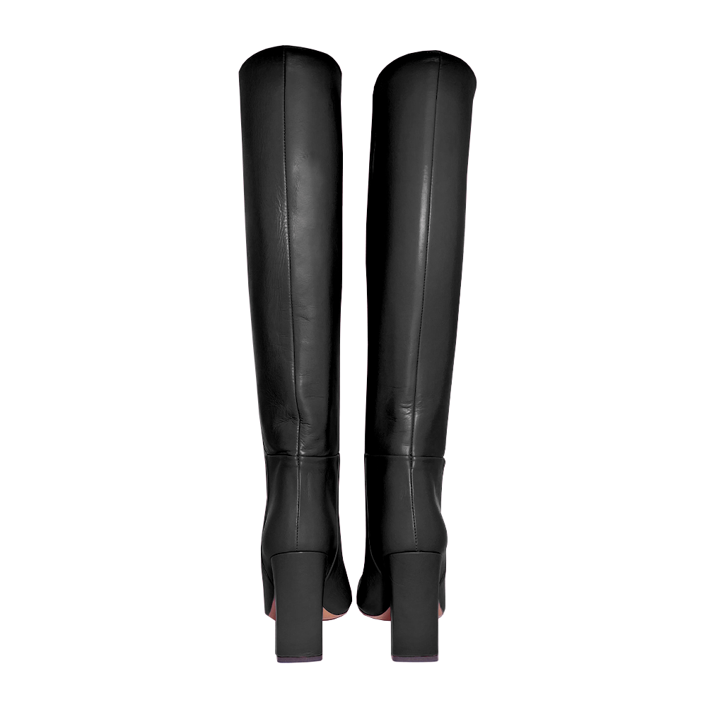 Stivale tubolare sotto al ginocchio in vera pelle con tacco da 100mm