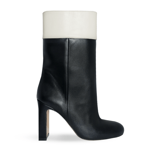 Stivaletto a punta tonda in vera pelle e fascia superiore con tacco da 100mm