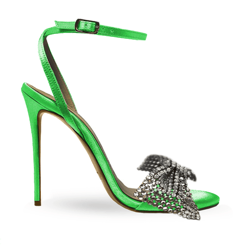 Round toe sandal in satin with headband with jewel covered with crystals and 100mm or 120mm stiletto heel