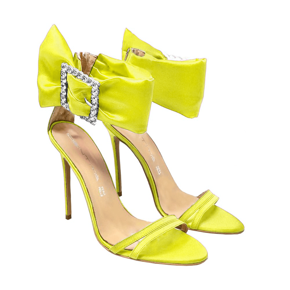 Round toe sandal in satin with strap and crystal buckle, 120mm stiletto heel