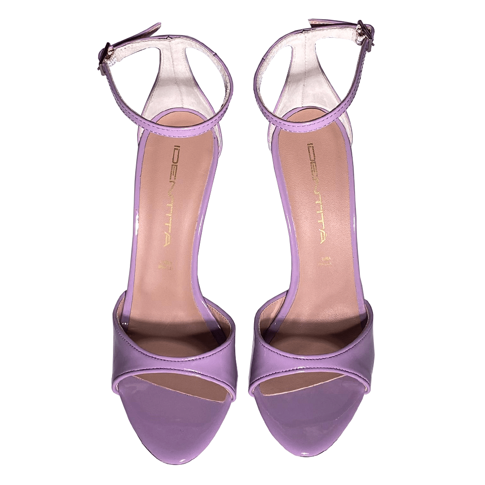 Round-toe sandal with patent leather strap and adjustable ankle strap, stiletto heel of 80mm, 100mm, or 120mm