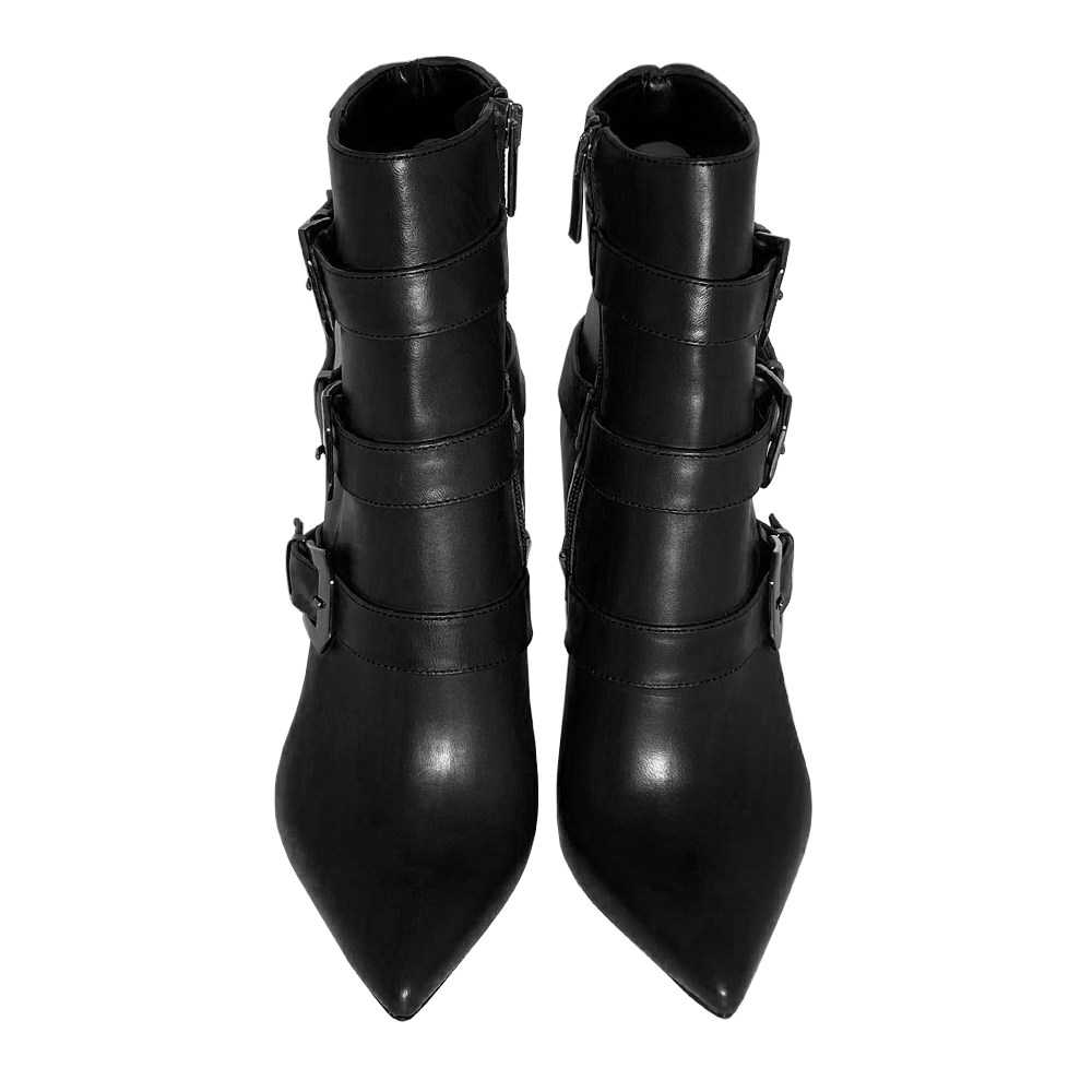 Genuine leather pointed toe ankle boot with 3 side buckles and 100mm or 120mm stiletto heel